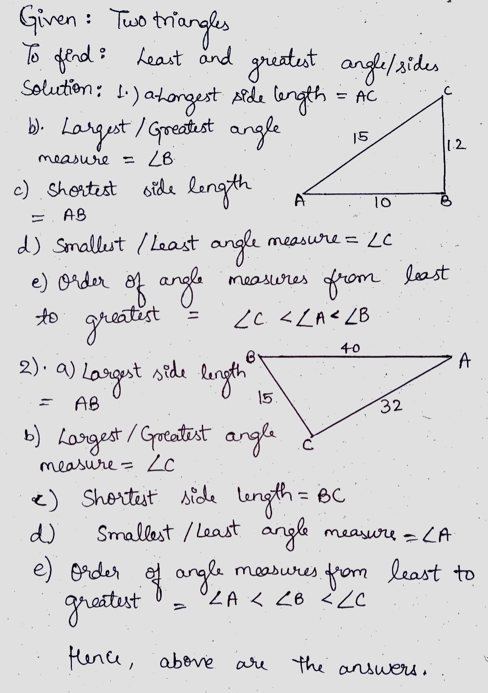 Triangles have three angles and so we will add x three times. If we get 180 degrees, then our answer for angle c is right. Given the length of two sides and the angle between them, the following formula can be used to determine the area of the triangle. Sometimes we can determine a missing angle because we know that the sum must be a certain value. A triangle can have three medians, all of which will intersect at the centroid (the arithmetic mean position of all the points in the triangle) of the triangle. Using the fact that angle a + angle b + angle c = 180 degrees, we can find the measure of angle c. See full list on freemathhelp.com If we add all three angles in any triangle we get 180 degrees. However, it does require that the lengths of the three sides are known. More images for how to find the angle measure of a triangle » Inradius the inradius is the radius of the largest circle that will fit inside the given polygon, in this case, a triangle. In triangle abc below, angle a = 40 degrees and angle b = 60 degrees. The base refers to any side of the triangle where the height is represented by the length of the line segment drawn from the vertex opposite the base, to a point on the base that forms a perpendicular.